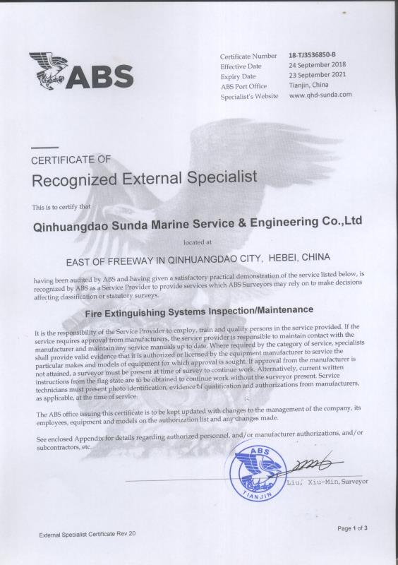 秦皇島順達船務有限公司位于美麗的海濱城市、中國北方著名的能源輸出大港--秦皇島。公司從事于船舶修理、物料供應、水下檢測、船體測厚、消防救生設備及救生艇檢驗、電氣自動化修理等服務。 公司自1997年成立至今,先后為國內外船東修理、檢驗各類船舶萬余艘,積累了豐富的施工經驗。公司現有場地100余畝,員工30余人,以及工程用車若干臺。我們公司一直本著嚴以律己、真誠待人、精益求精、信譽至上的經營理念,以優質的服務、專業的施工、合理的收費,得到了國內外船東的廣泛認可,贏得了良好的口碑和信譽。 公司已取得了中國船級社(CCS)、美國船級社(ABS)、日本船級社(NK)、德國船級社(DNV GL)等各個船級社的消防救生和救生艇檢驗資質, ...